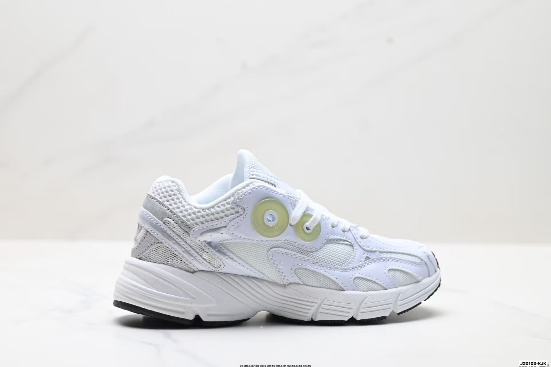 Inspired by 2000s running silhouettes, the layered construction and bold eyelet details create a nostalgic sporty look that stands out in casual outfits.