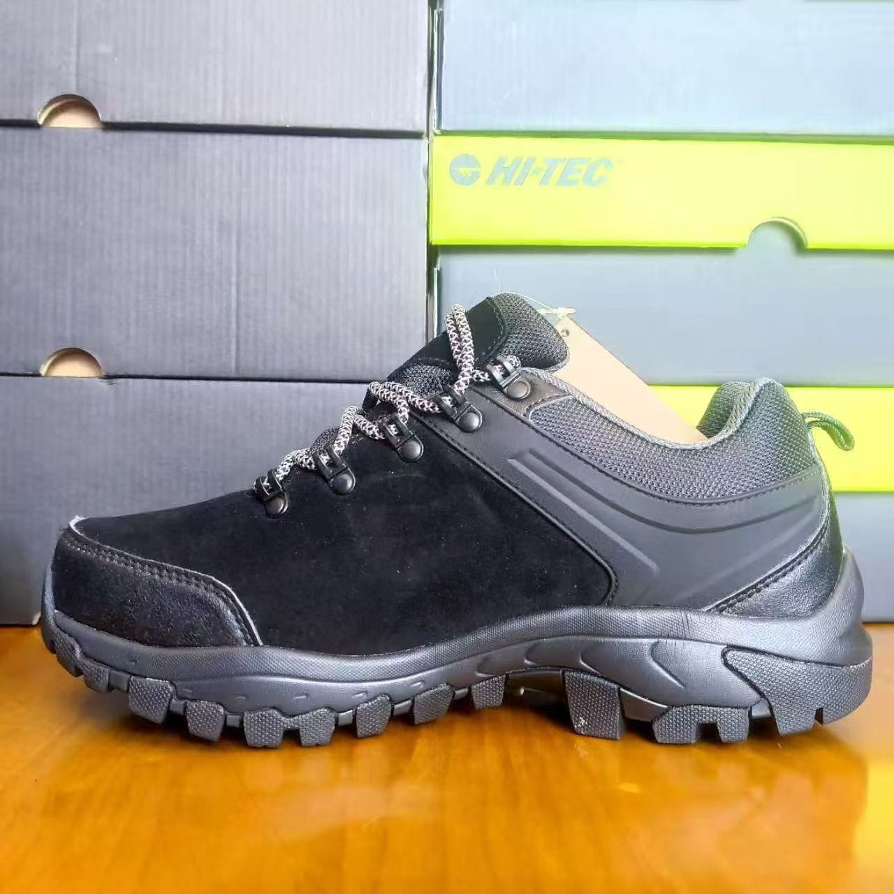 Outdoor hiking boots with breathable comfort and durable grip for trail and daily outdoor use. 1 style, 3 colors, size EU 40–46. 13,000 pairs available. Packed in original cartons. Request photos and a quote.